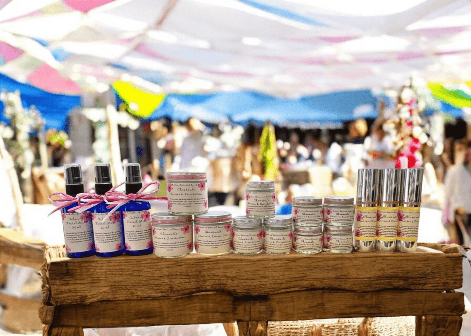 A calm, comforting micro-display of our top chamomile-powered skincare: barcoded, labelled, and ready to share.